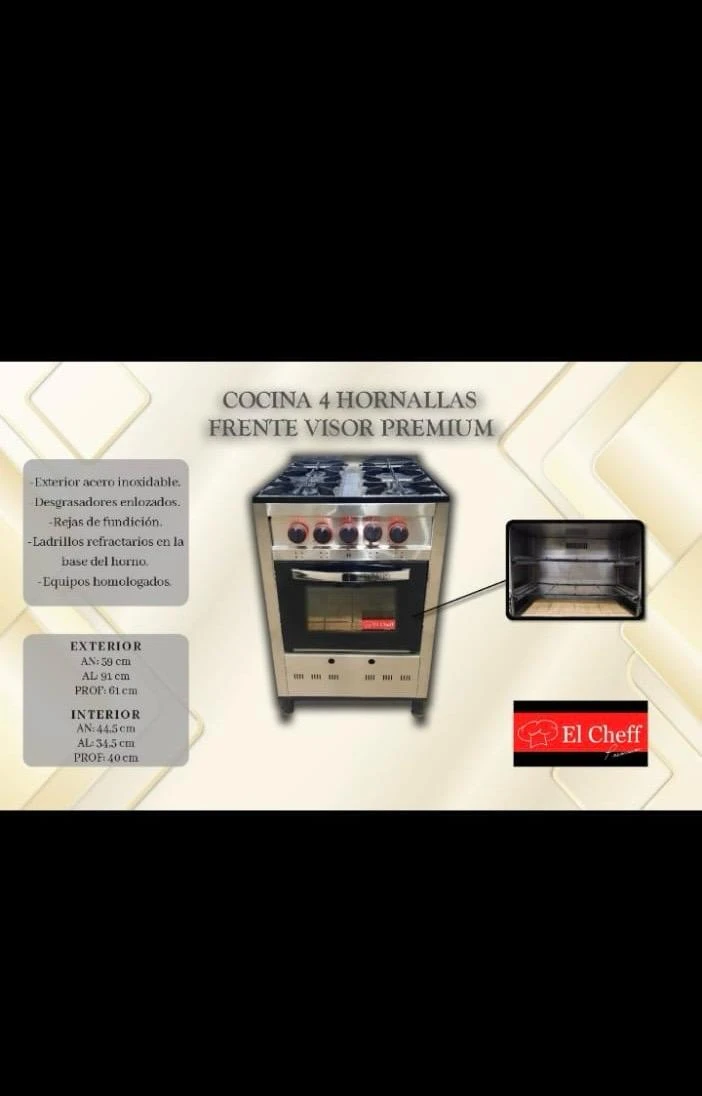 COCINA PREMIUM 4 HORNALLA CON FRENTE VISOR